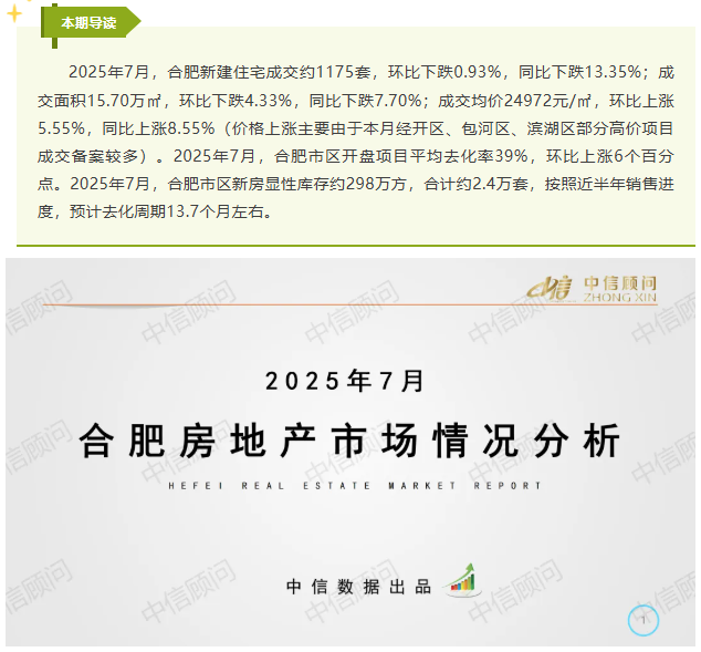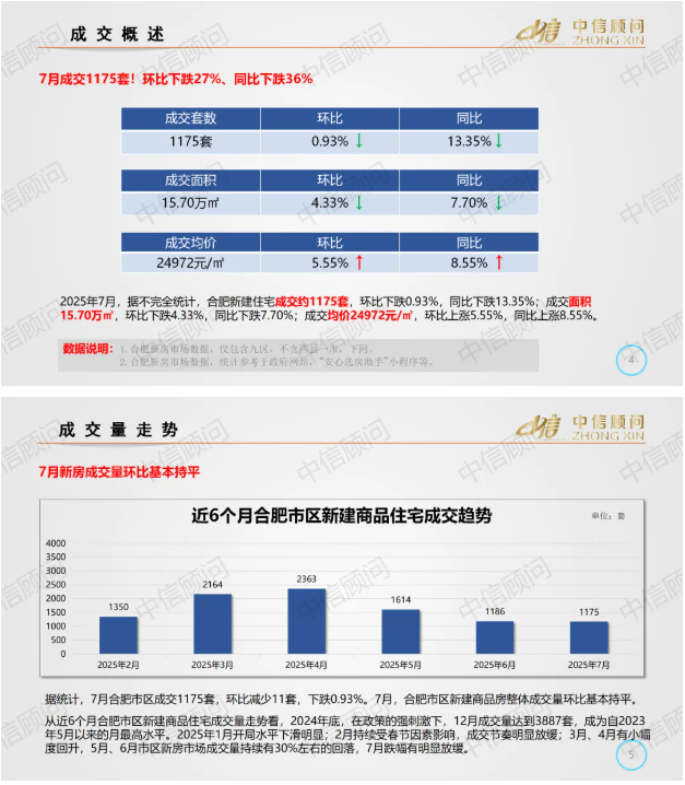 新房市場(chǎng) | 2025年7月,合肥新房成交量環(huán)比下跌0.93%,同比下跌13.35%