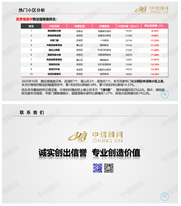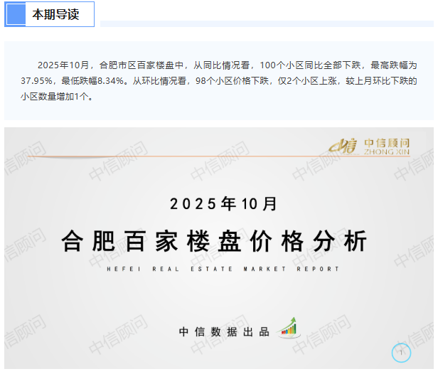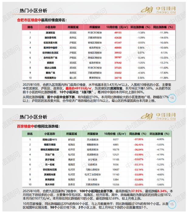 二手房市場 | 2025年10月,合肥百家樓盤環比98下跌2上漲,同比最低跌幅8%以上